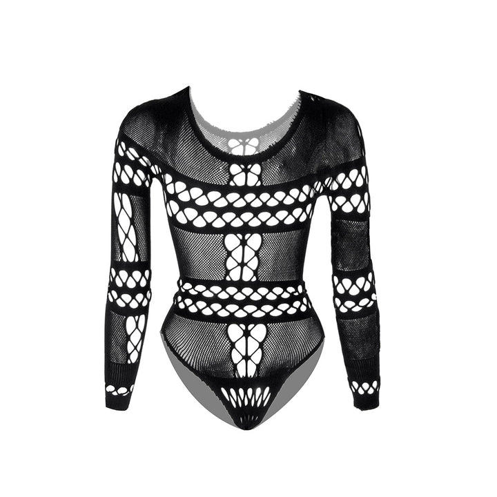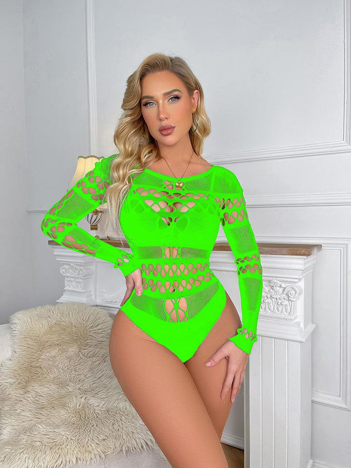 Long sleeve hollow out fishnet bodysuit
