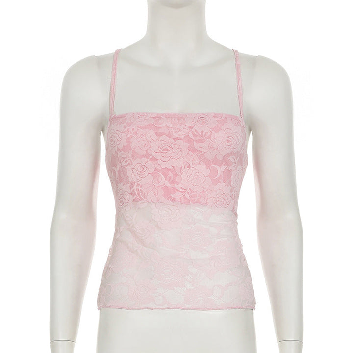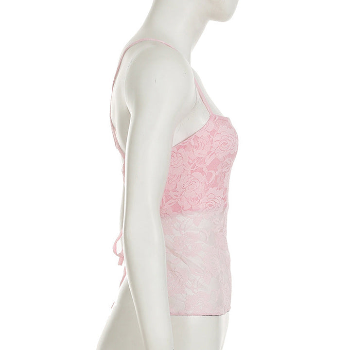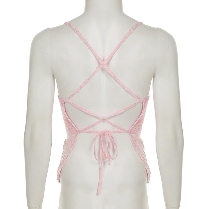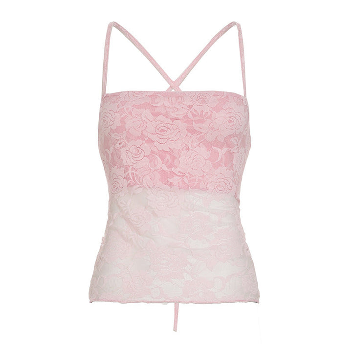 Lace cross back cami top