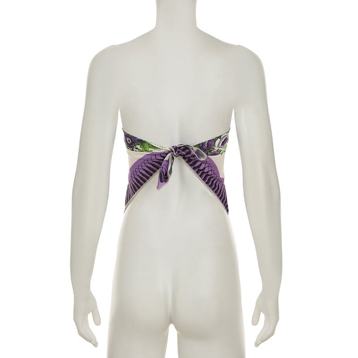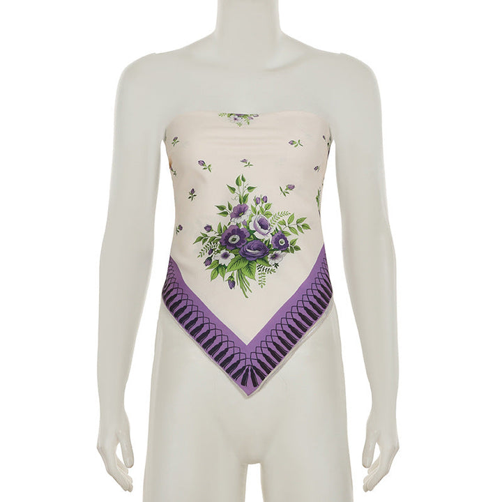 Flower print knotted tube top
