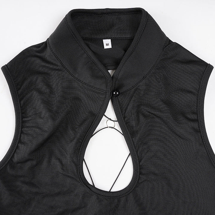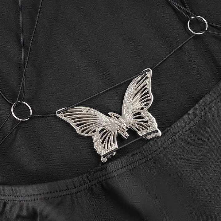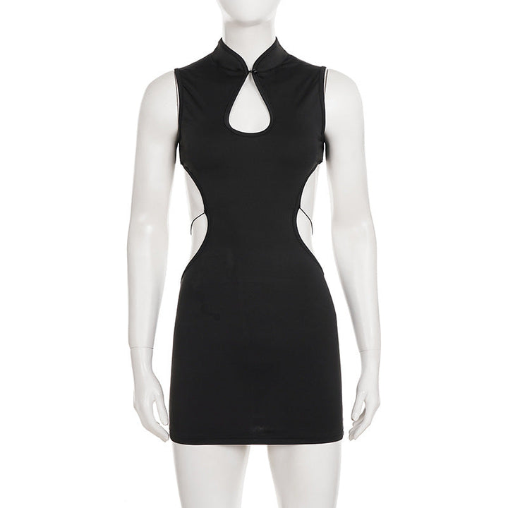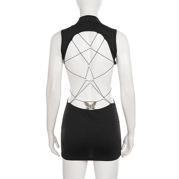 High neck backless butterfly applique mini dress