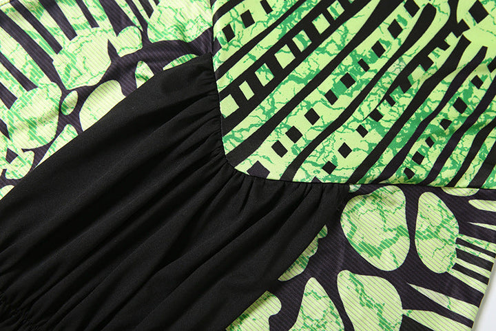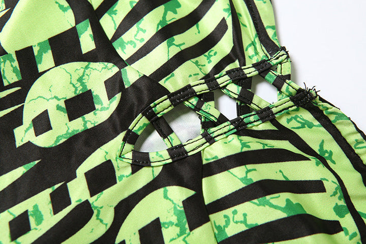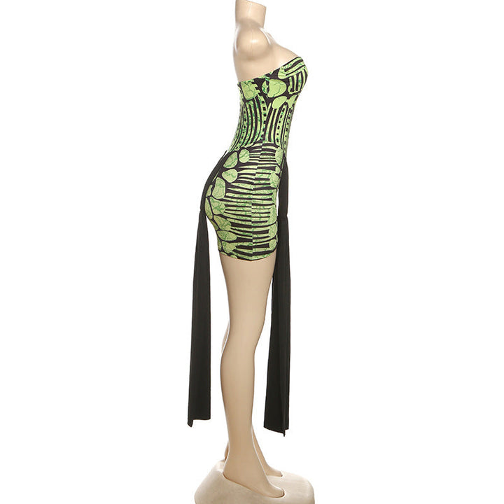 Hollow out print contrast tube mini dress