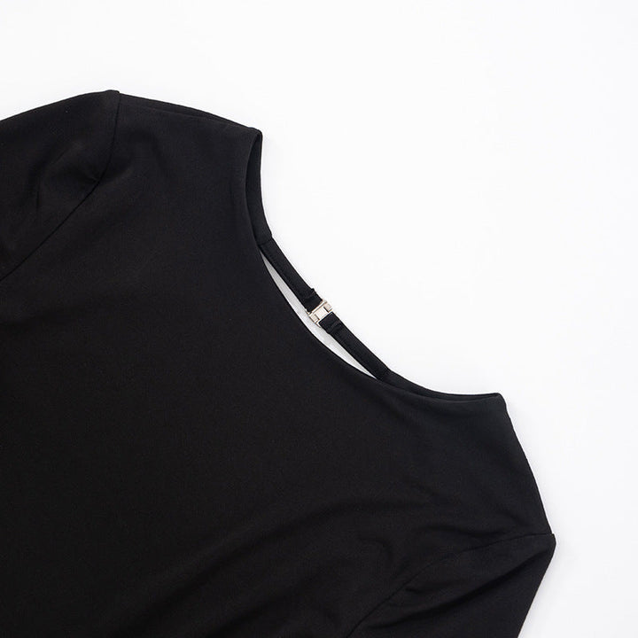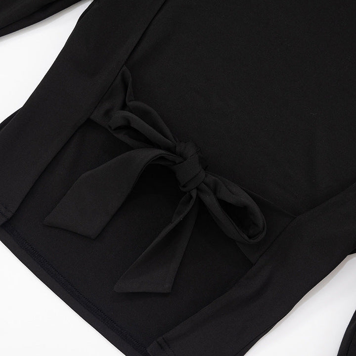 Long sleeve crewneck self tie backless top