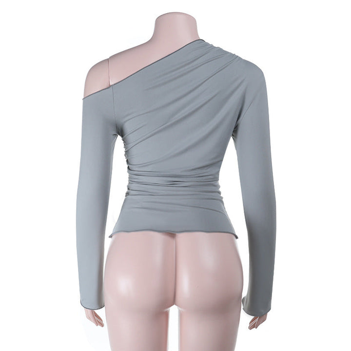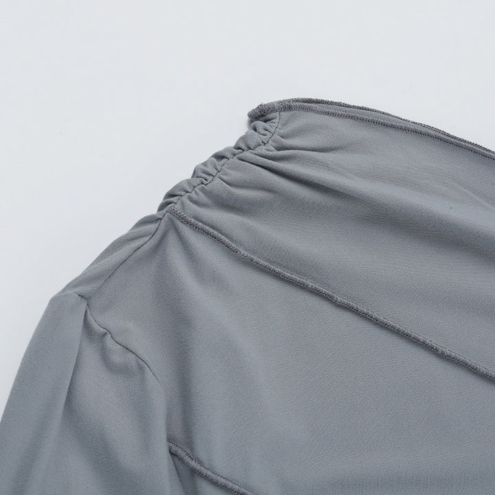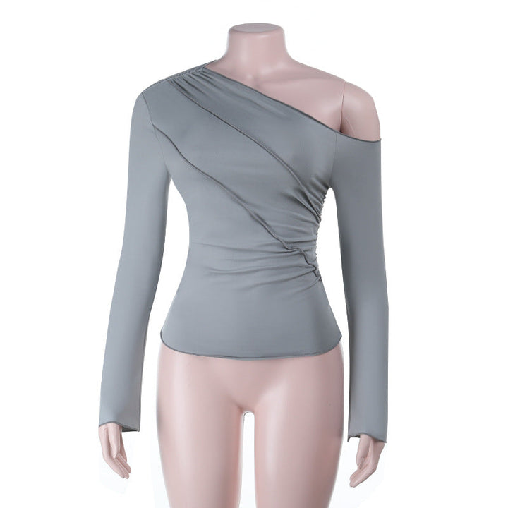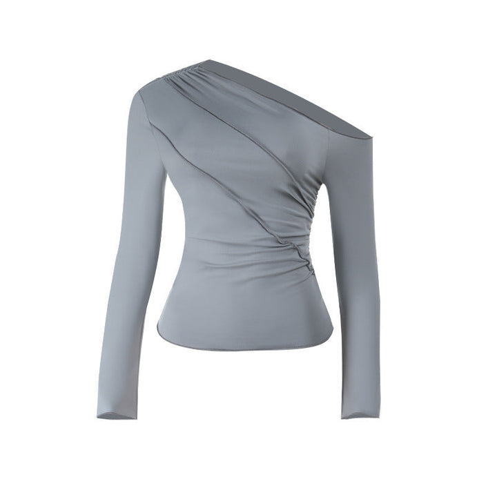 Long sleeve one shoulder ruched solid top