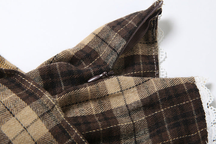 Plaid irregular zip-up lace hem mini skirt