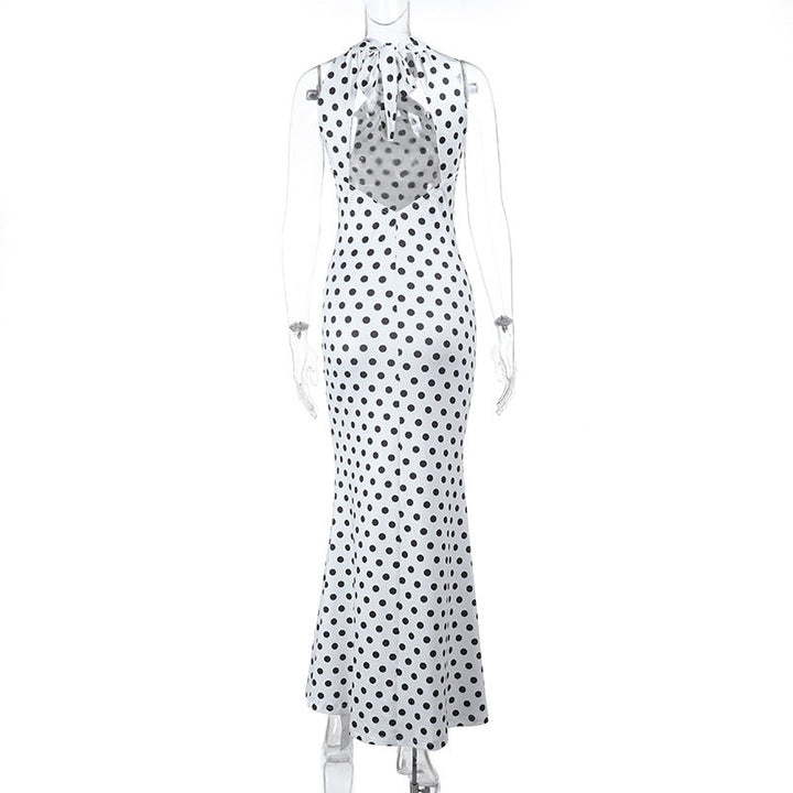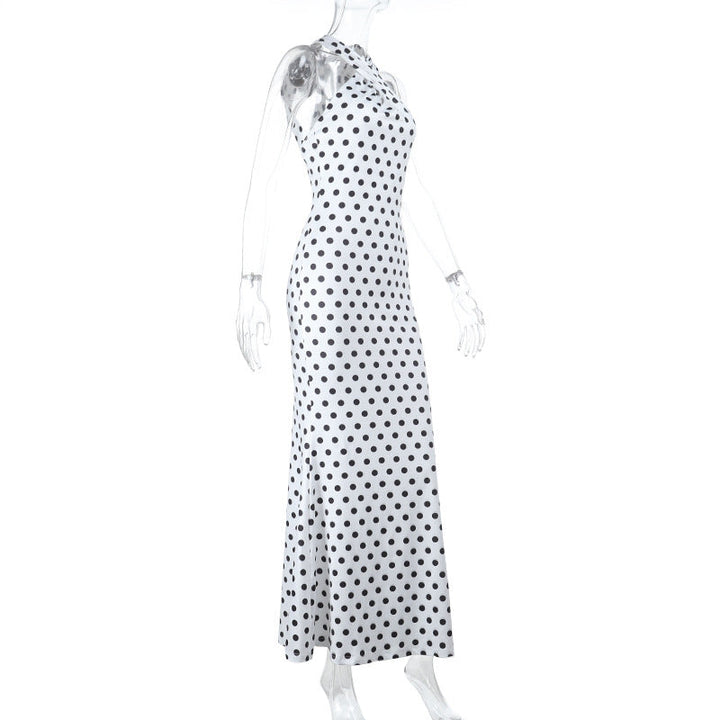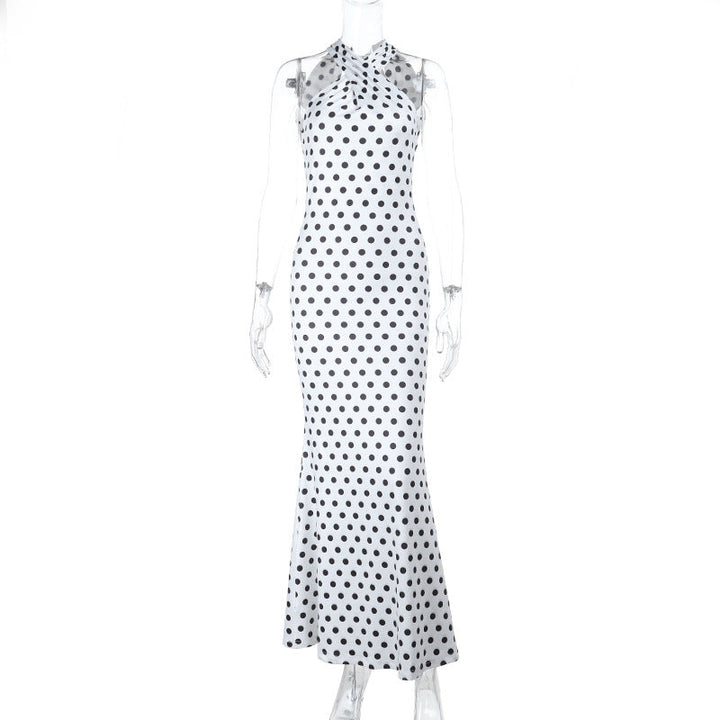 Polka dot cross front backless maxi dress