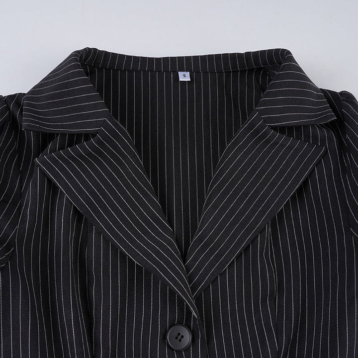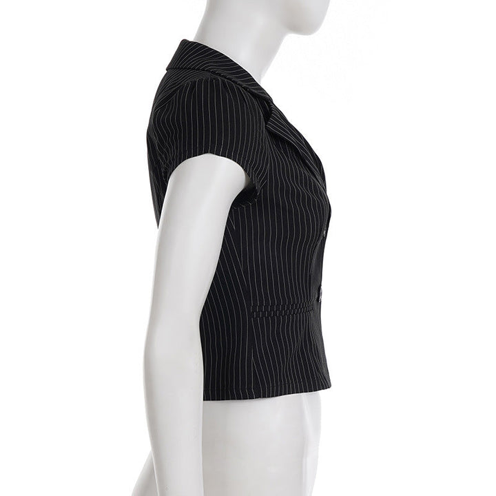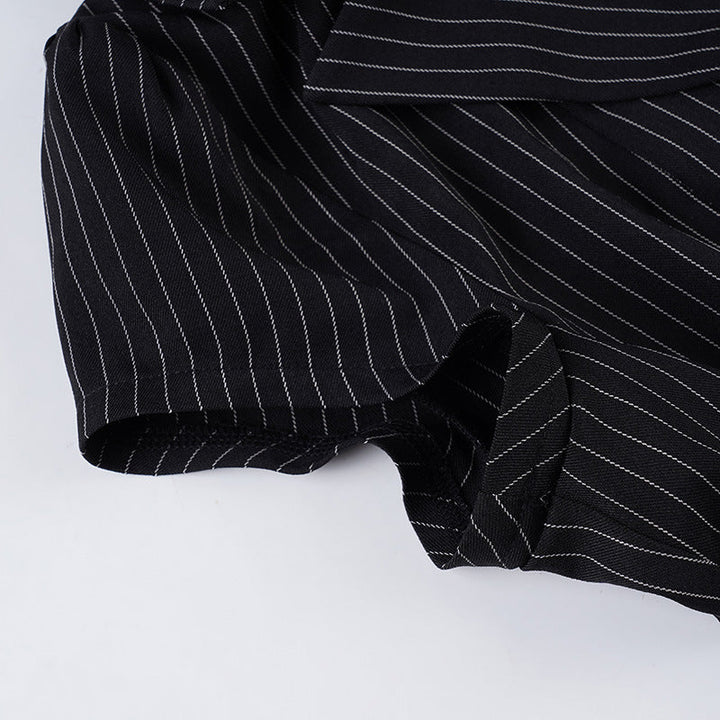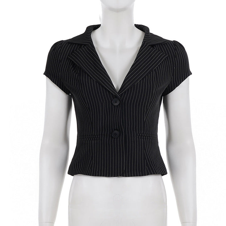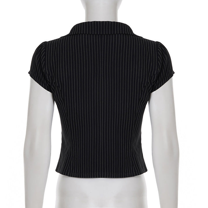Turnover collar v neck striped print top