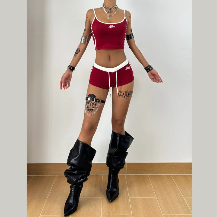 U neck embroidery cami short pant set