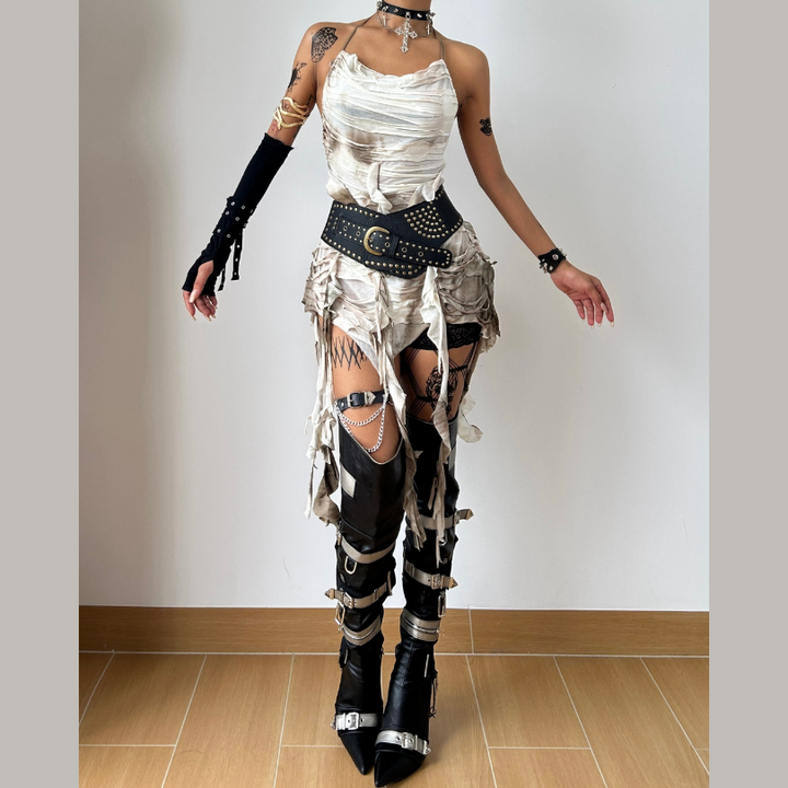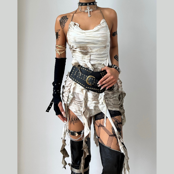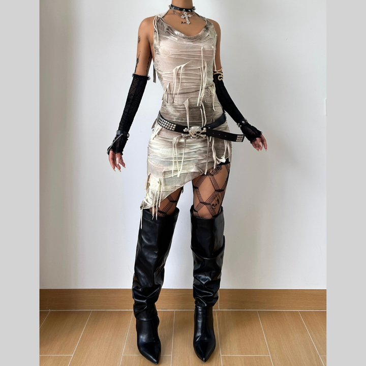 Minivestido irregular con capucha y cuello vuelto con efecto tie-dye
