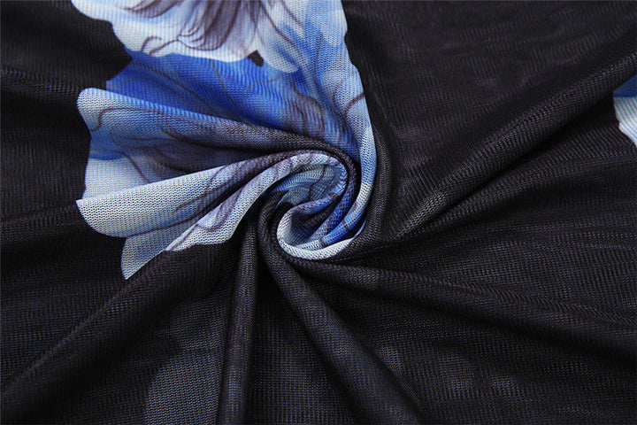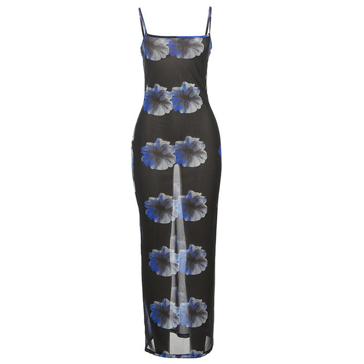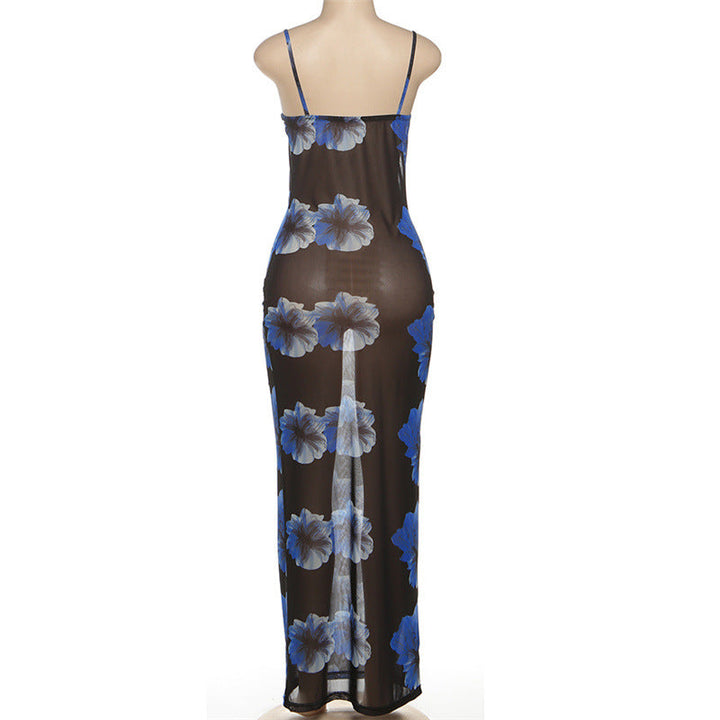 Flower print mesh cami maxi dress
