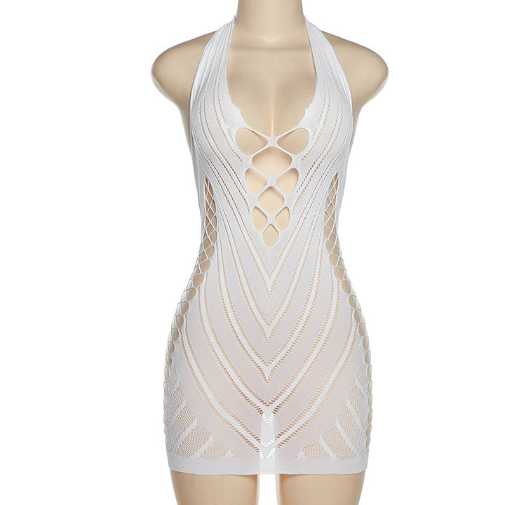 Halter fishnet hollow out backless mini dress