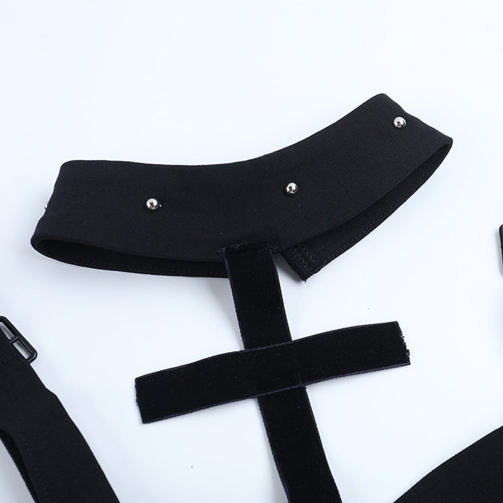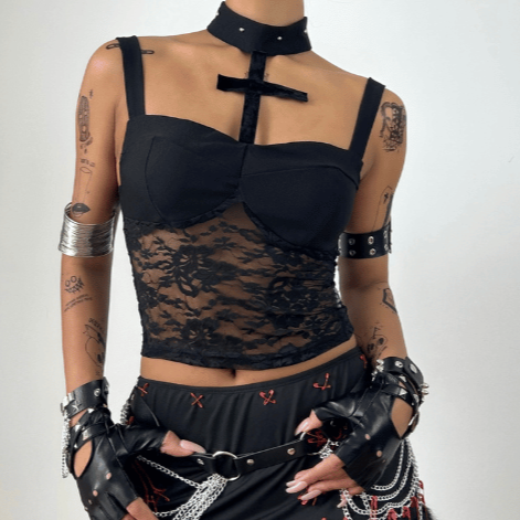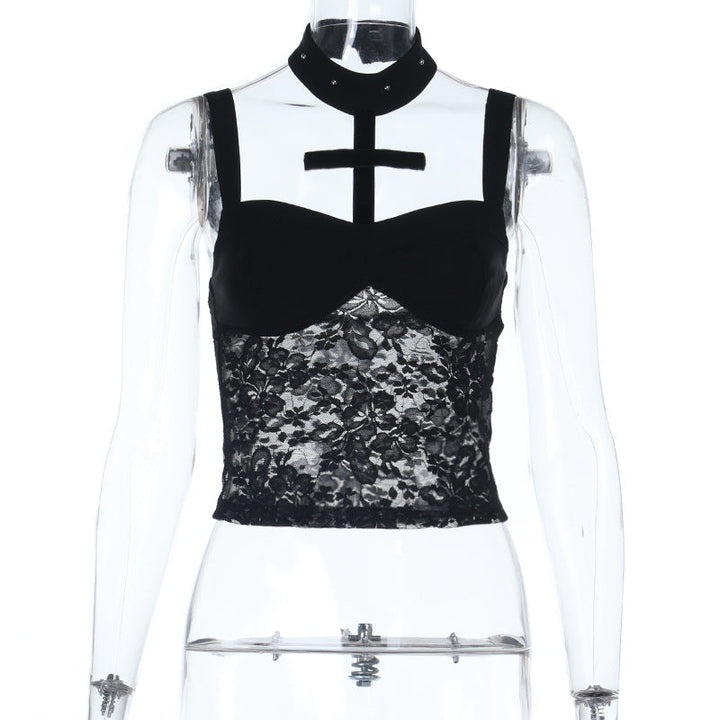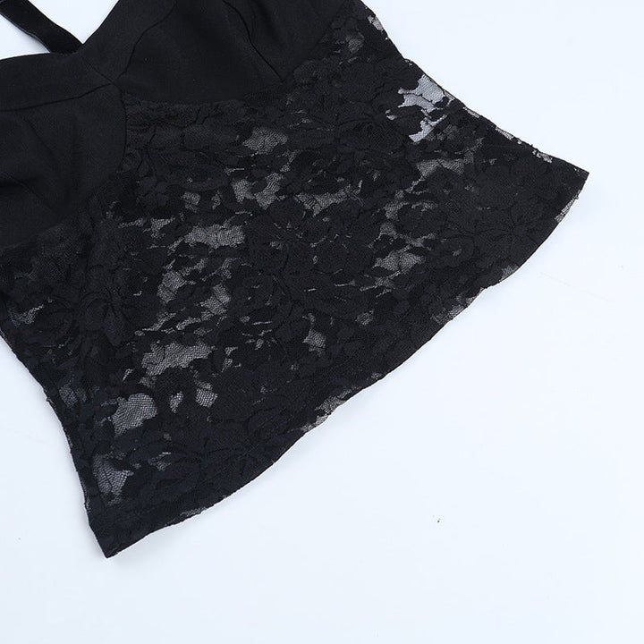 Halter lace button backless cami top