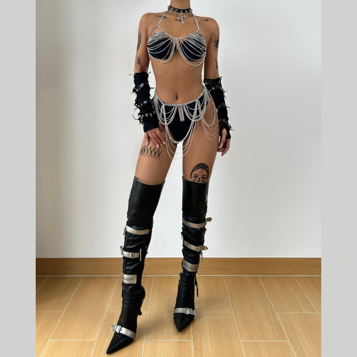 Halter metal waist chain backless set