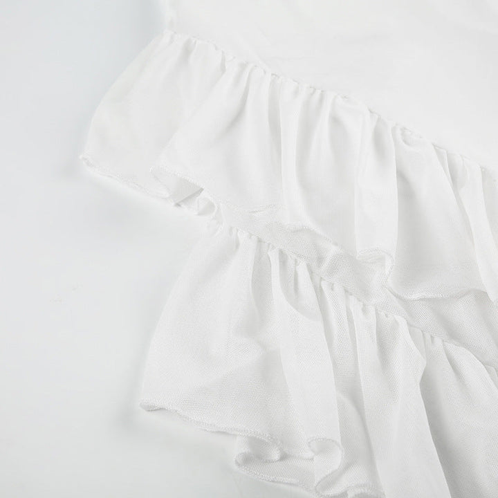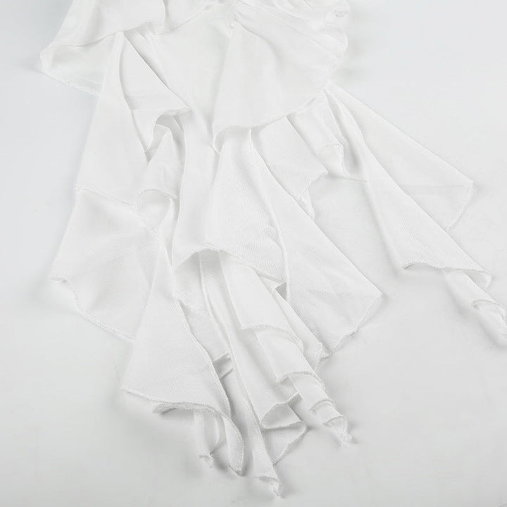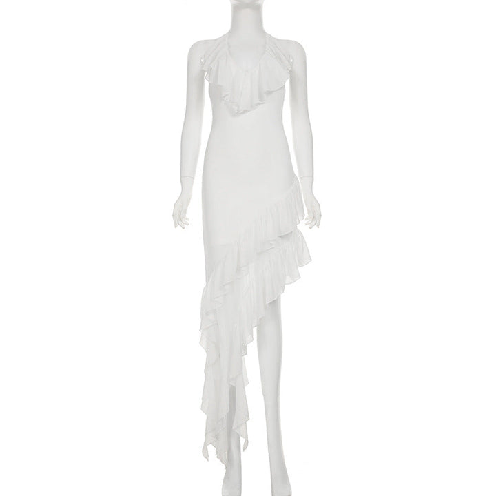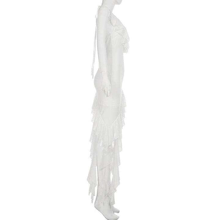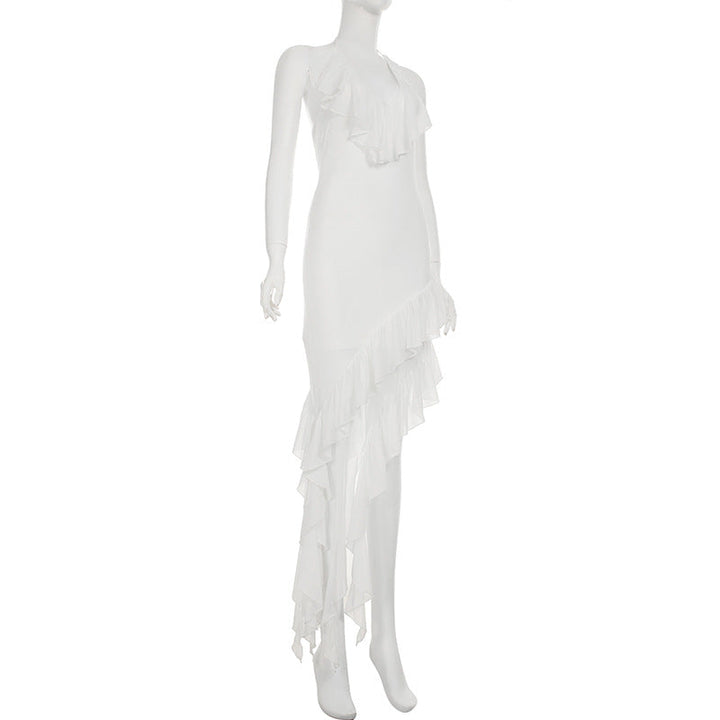 Halter ruffle irregular self tie maxi dress