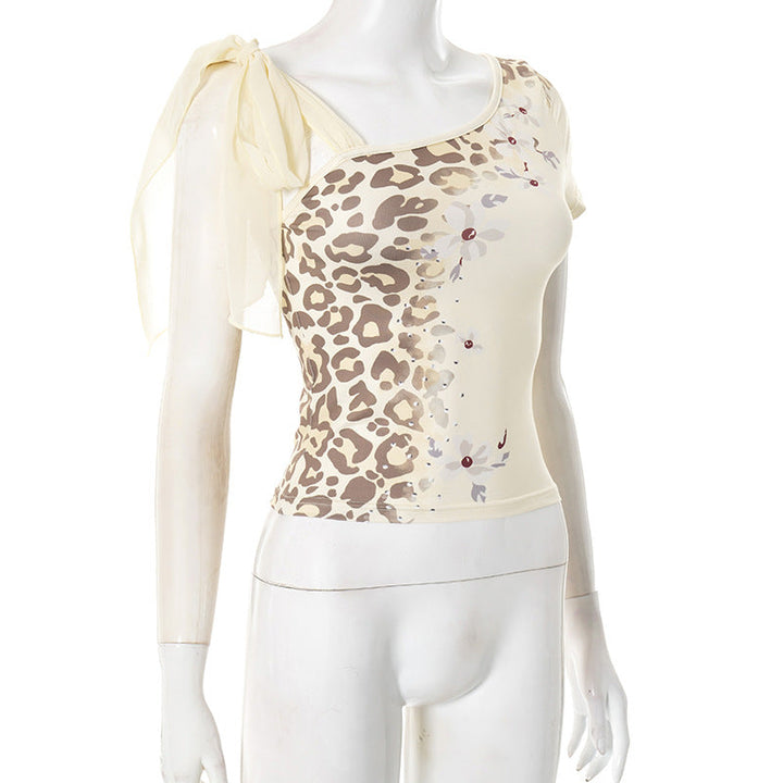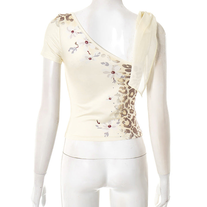 Irregular self tie short sleeve print top