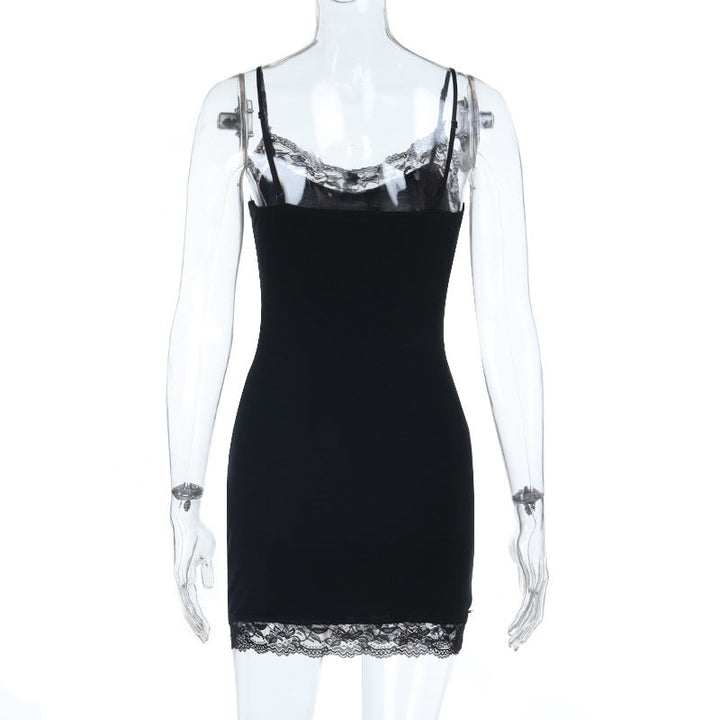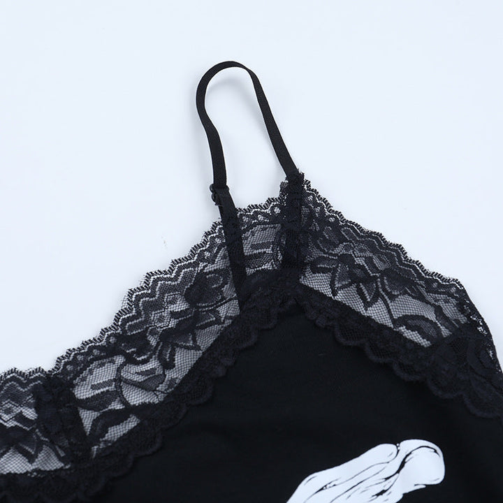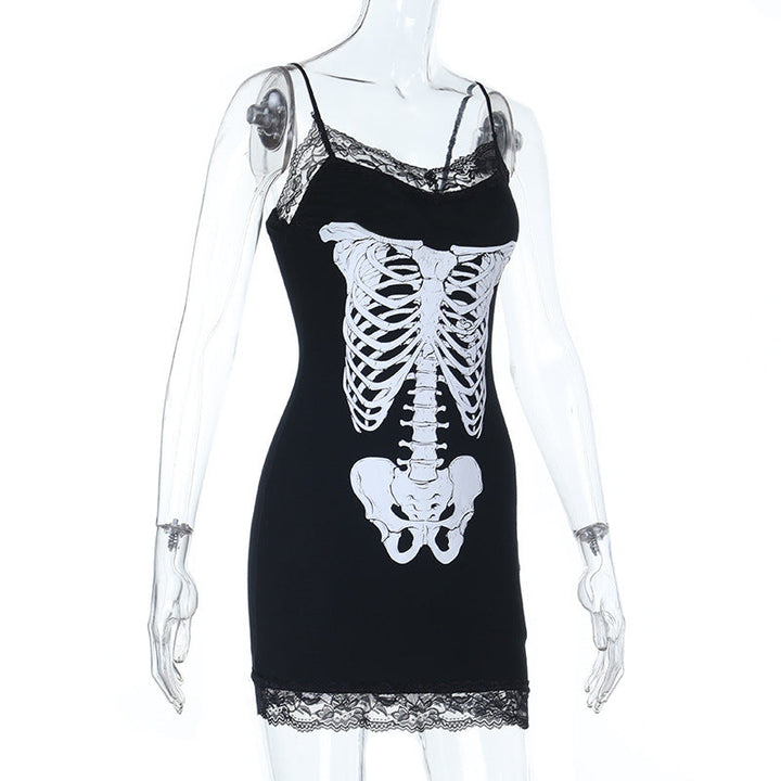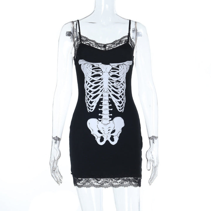 Lace hem v neck skeleton print cami mini dress