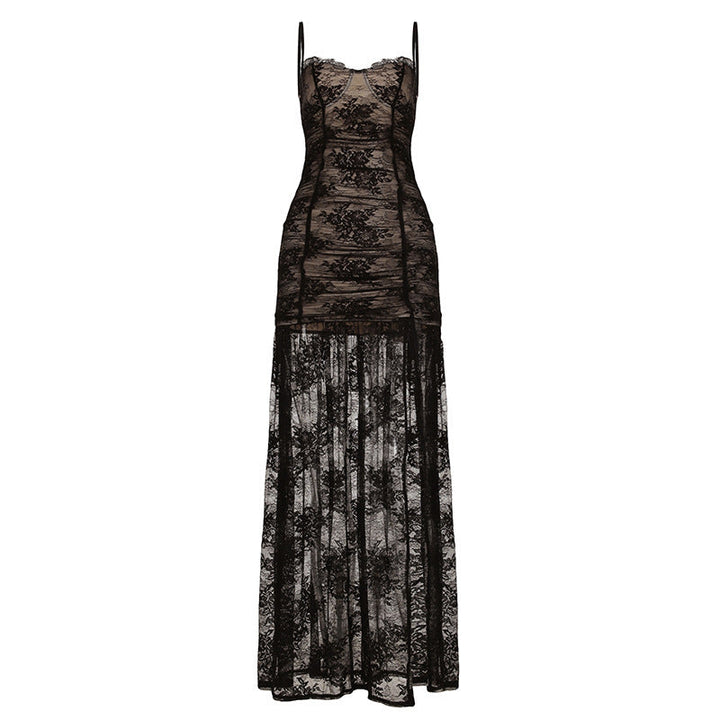 Lace ruched high slit cami maxi dress