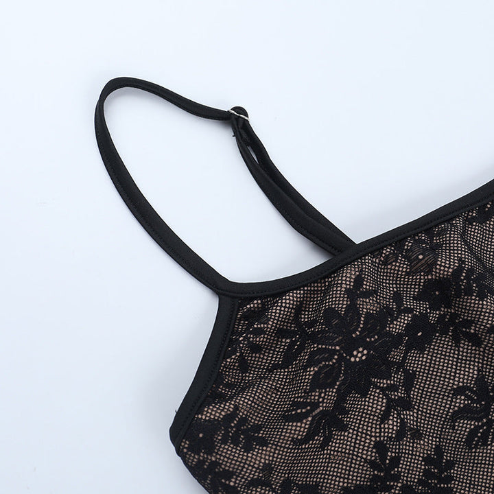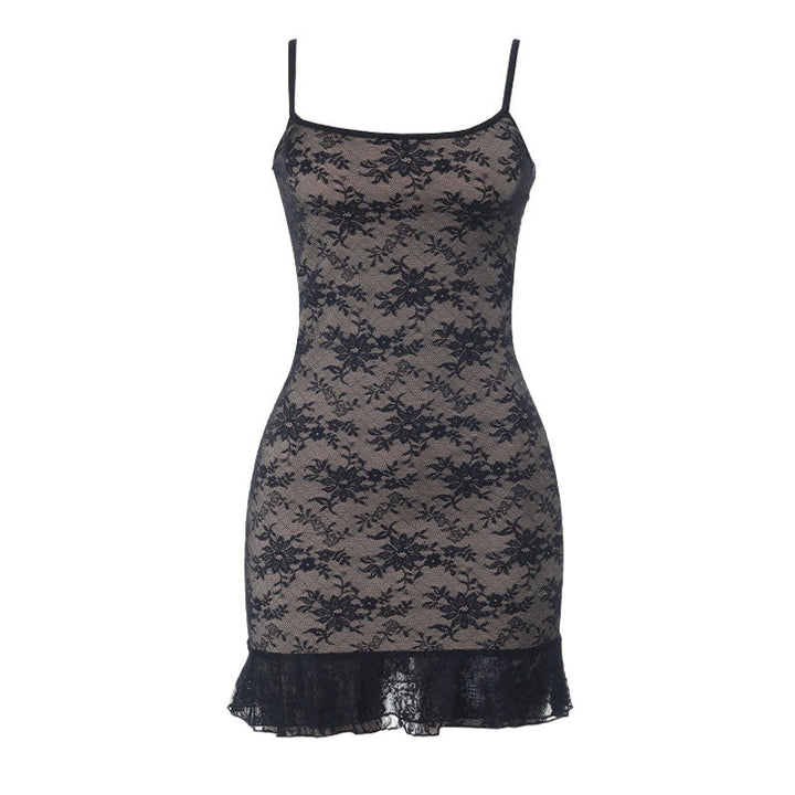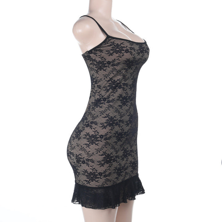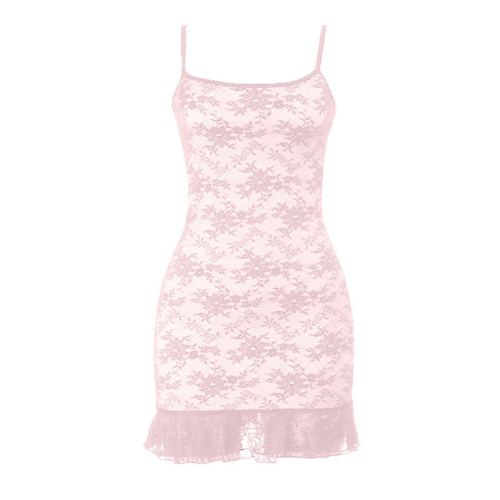 Lace square neck backless cami mini dress