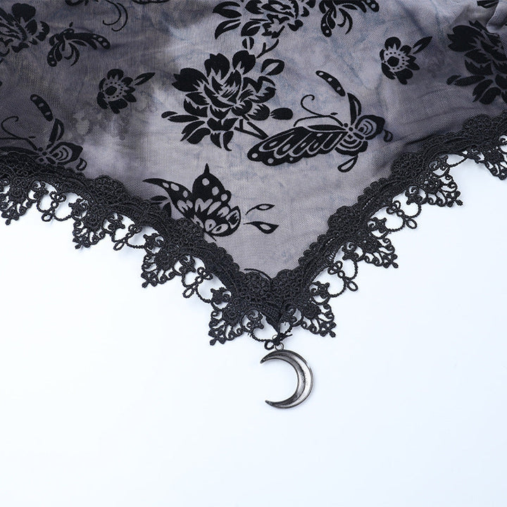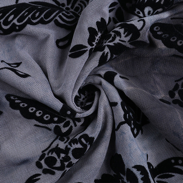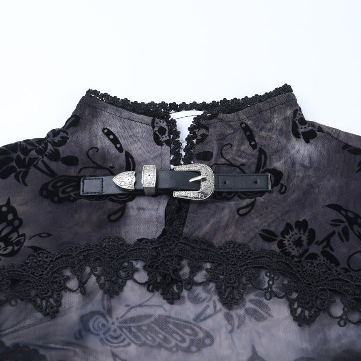 Long flared sleeve buckle print mesh top