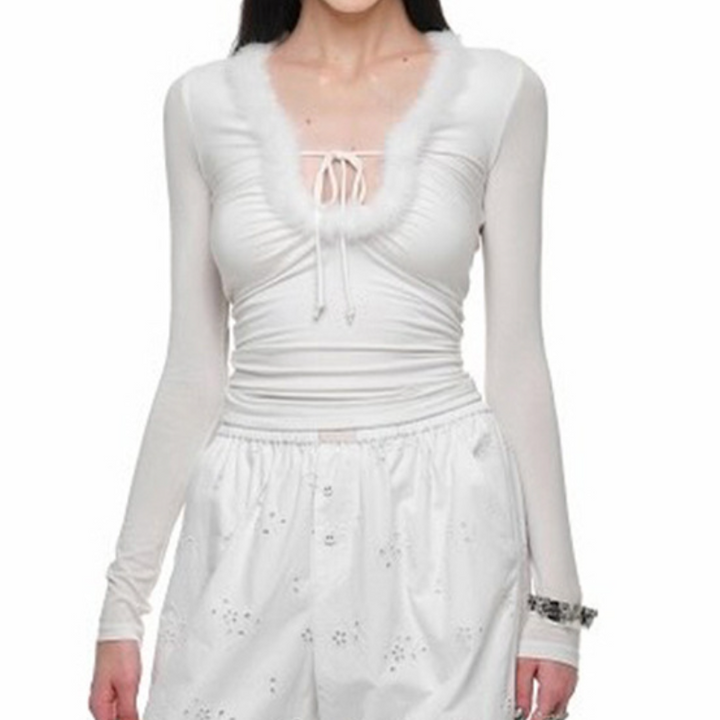 Long sleeve fluffy solid top
