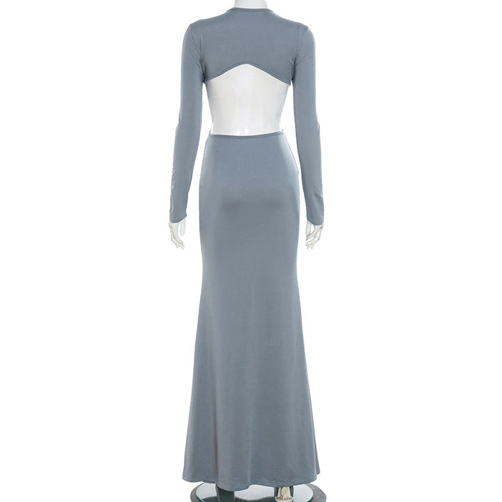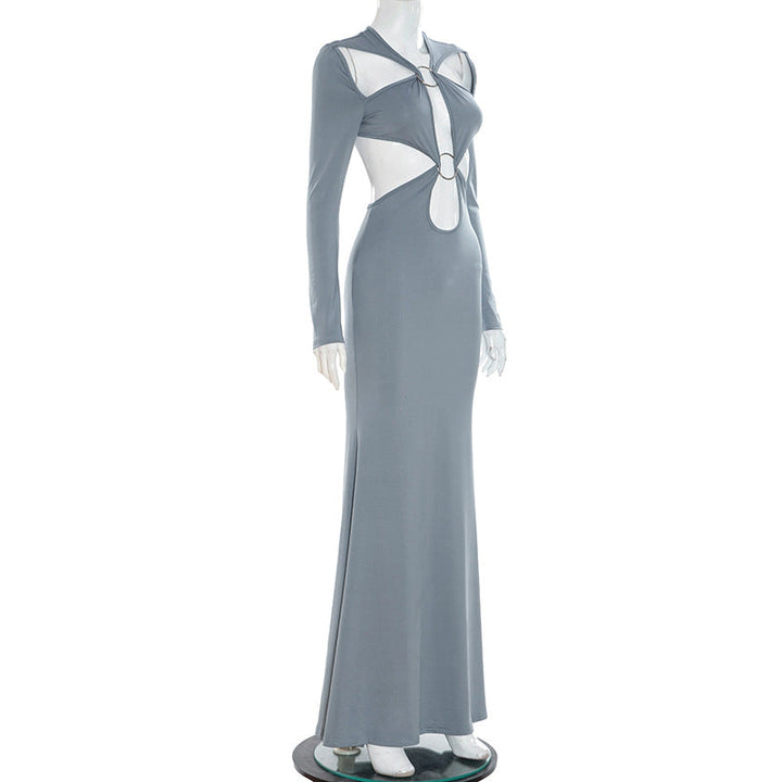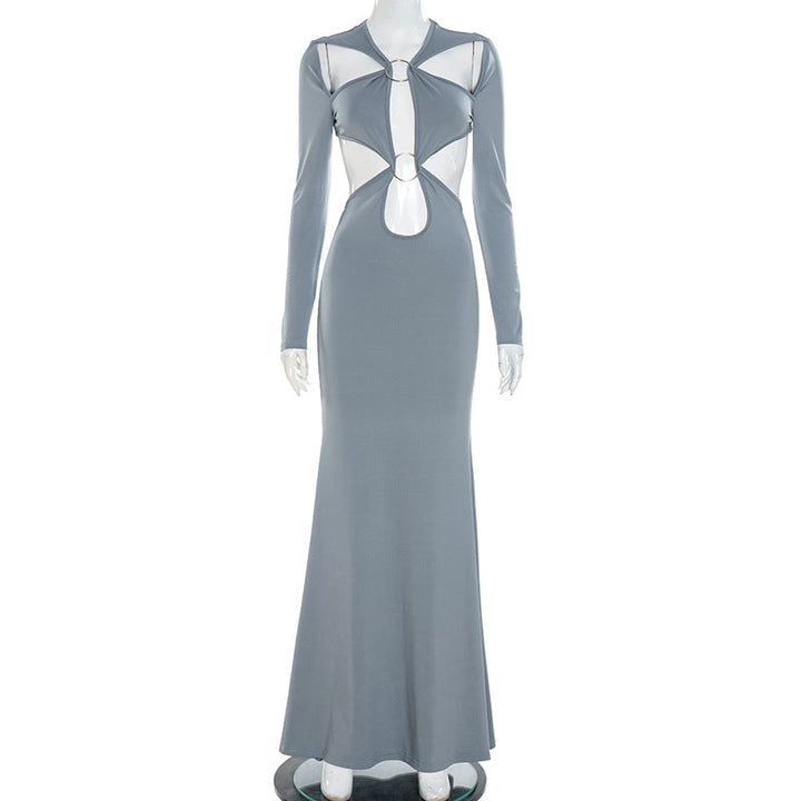 Long sleeve o ring hollow out maxi dress