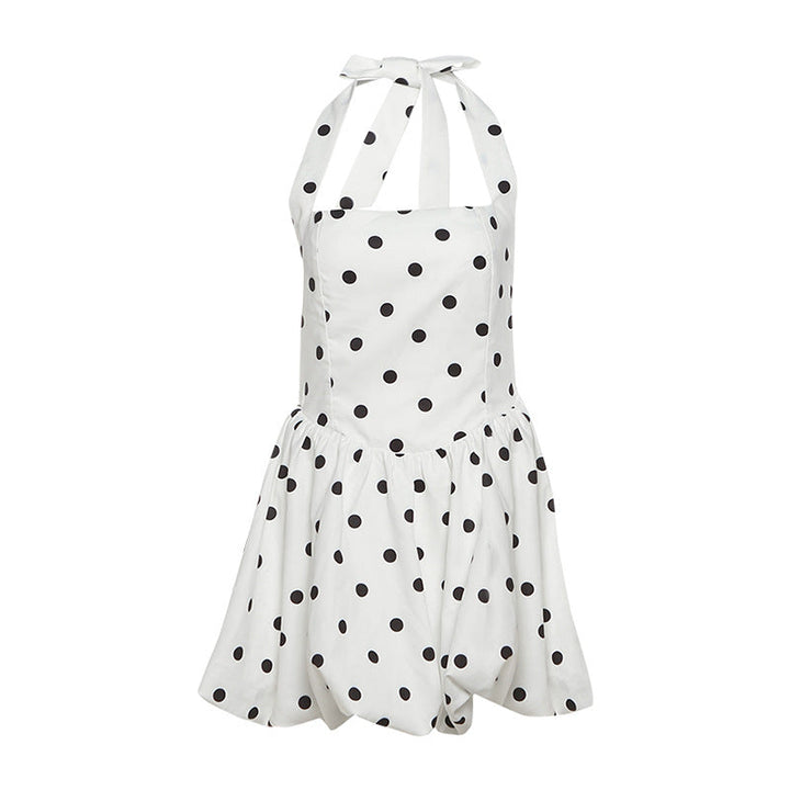 Polka dot halter smocked mini dress