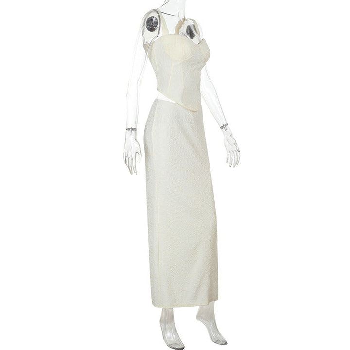 Slit v neck smocked apricot maxi skirt set