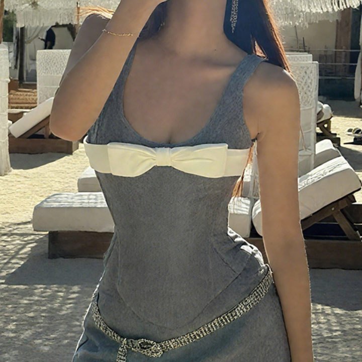 Bowknot u neck contrast tank top