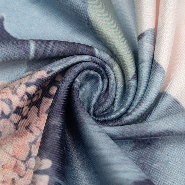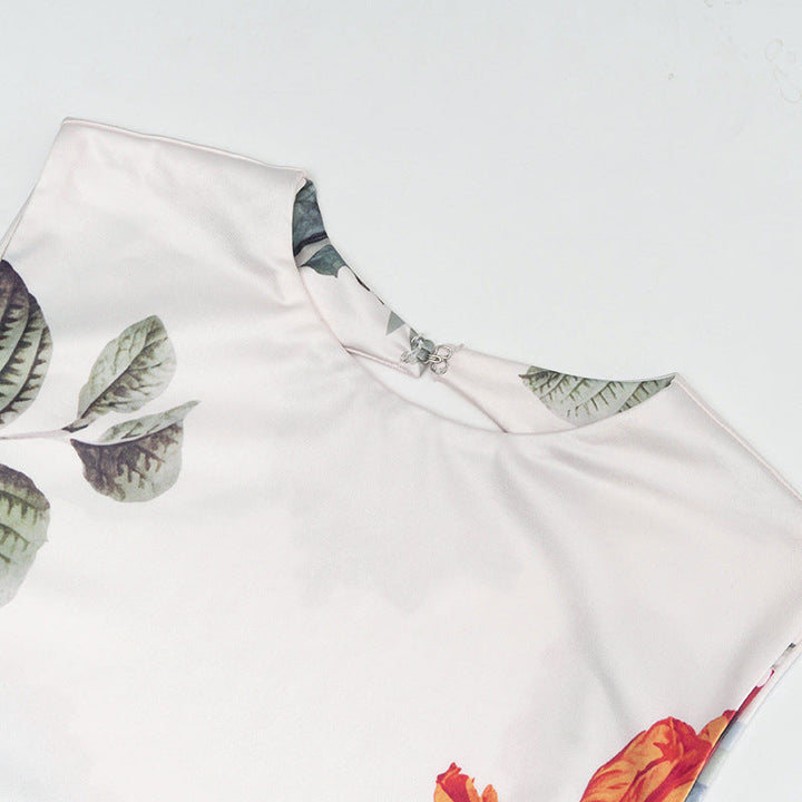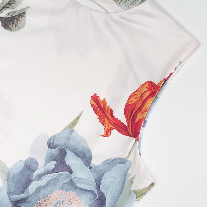 Crewneck flower print backless maxi dress