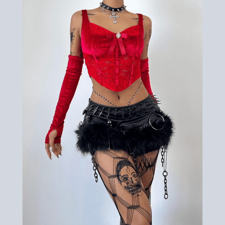 Gloves bowknot lace velvet patchwork cami top