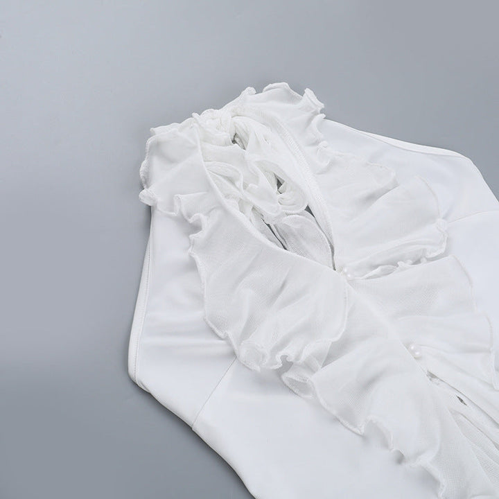 Halter backless ruffle self tie top
