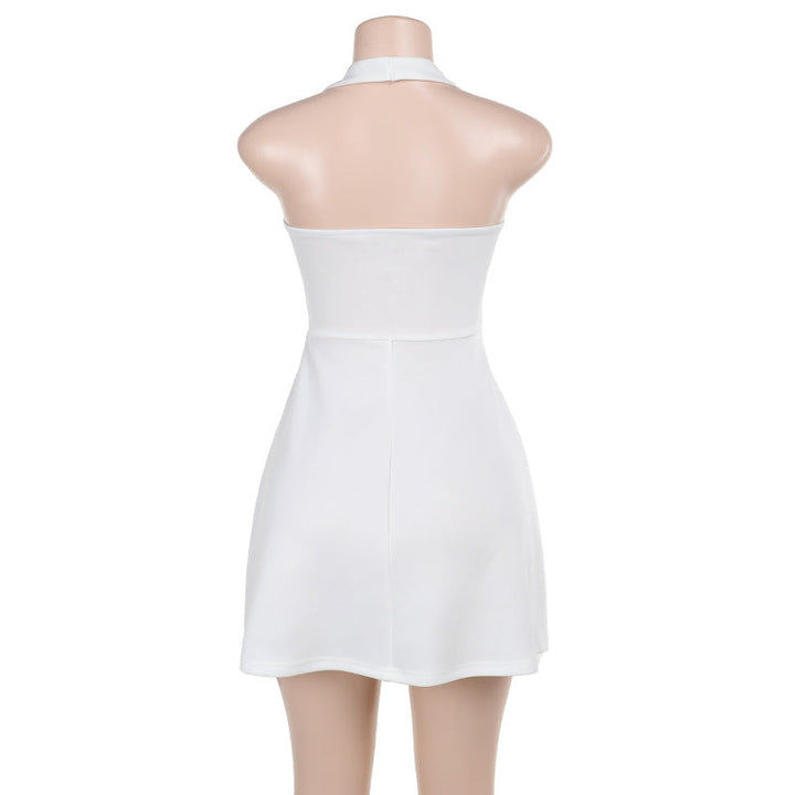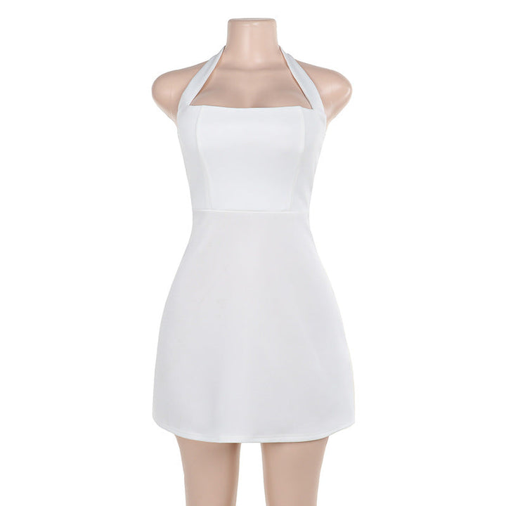 Halter square neck backless solid mini dress