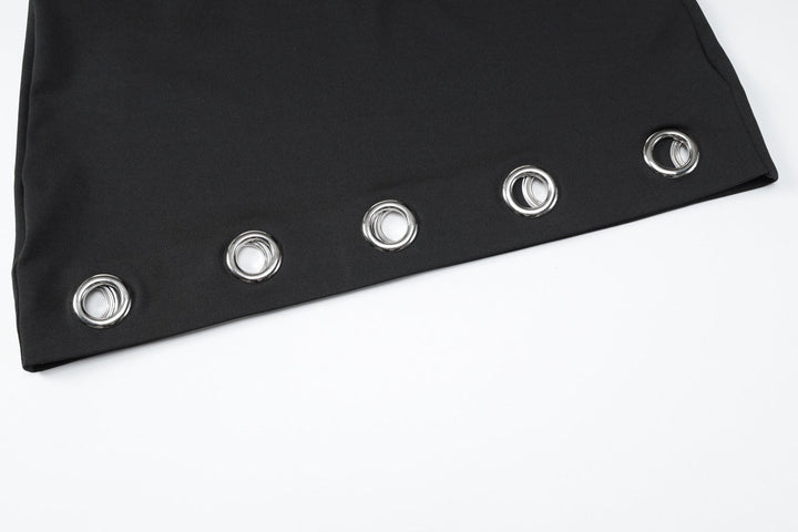 Hollow out A line solid mini skirt