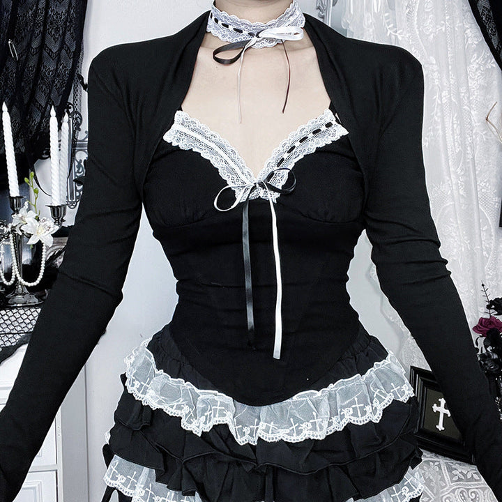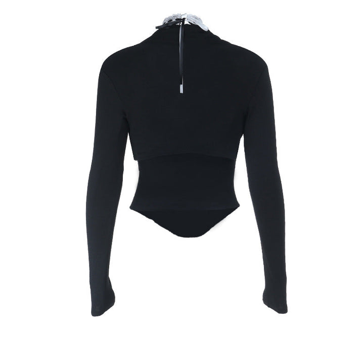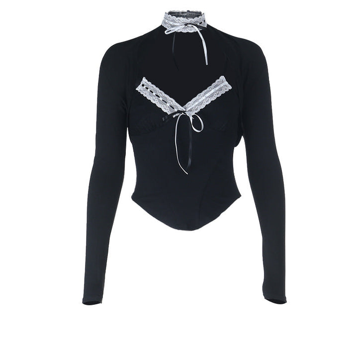 Long sleeve self tie v neck top