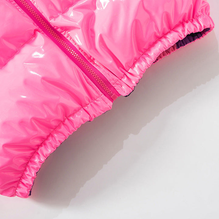 Long sleeve zip-up print turnover collar PU leather top
