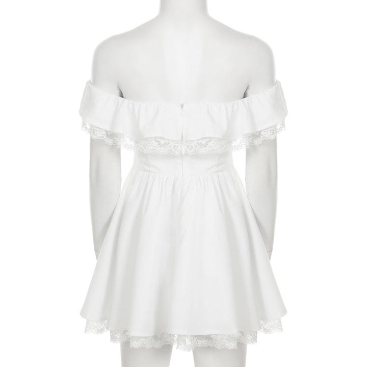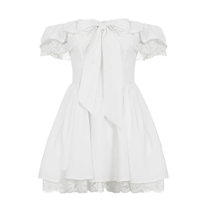 Off shoulder bowknot lace hem zip-up mini dress