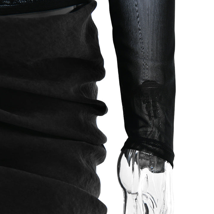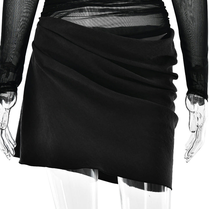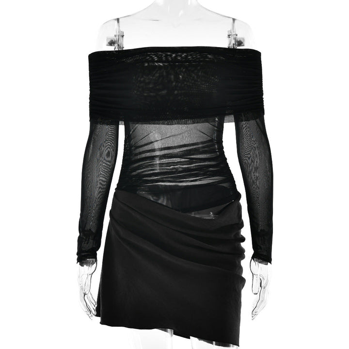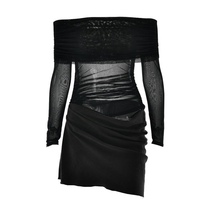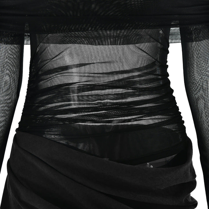 Off shoulder hollow out mesh patchwork mini dress