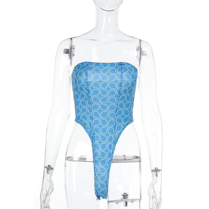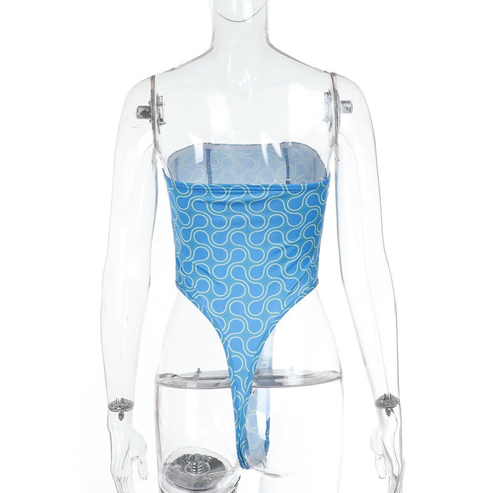 Print backless corset tube bodysuit