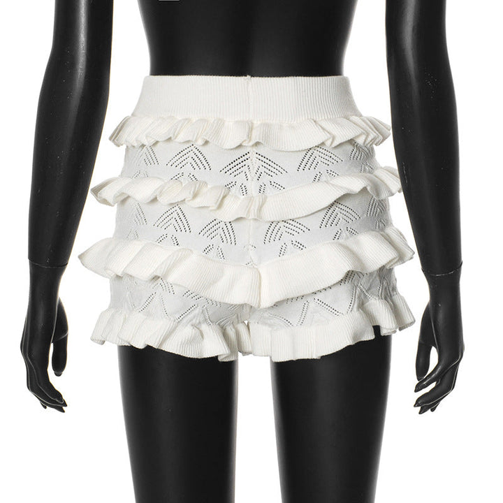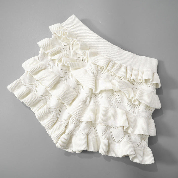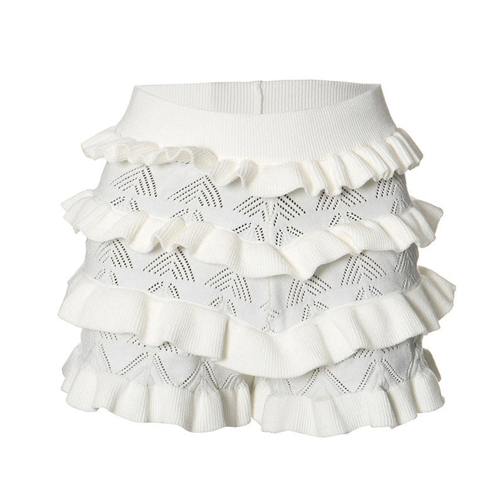 Ruffle knitted solid short pant