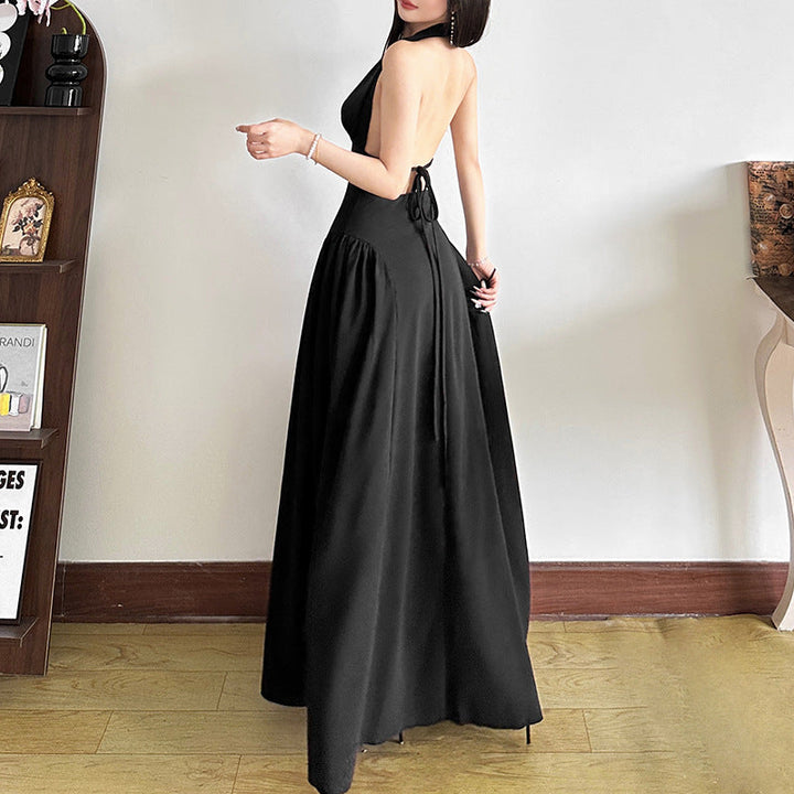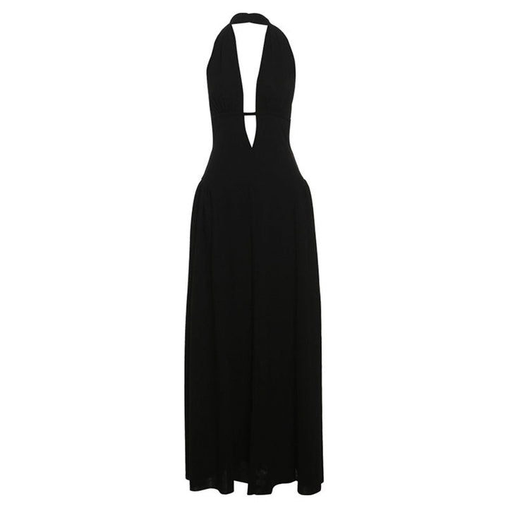 Self tie halter deep v neck hollow out maxi dress