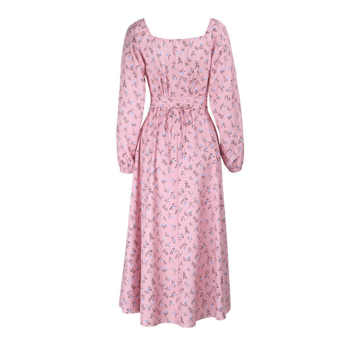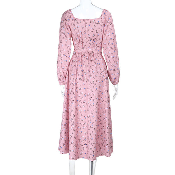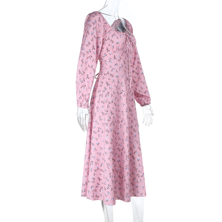 Square neck long sleeve high slit flower print maxi dress