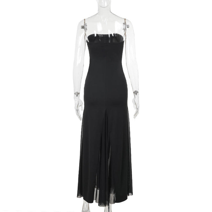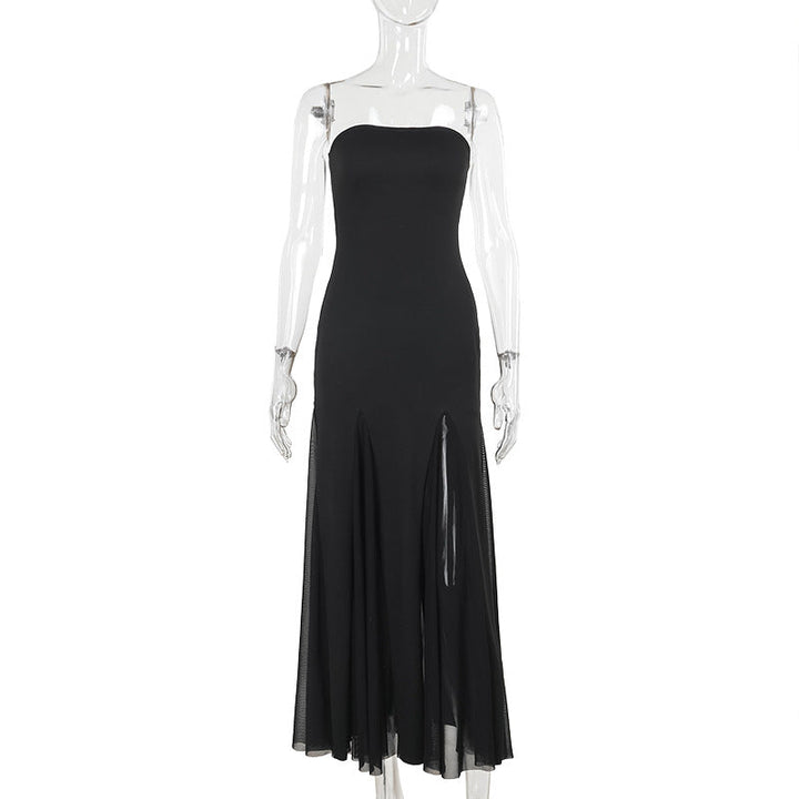Mesh high slit tube maxi dress
