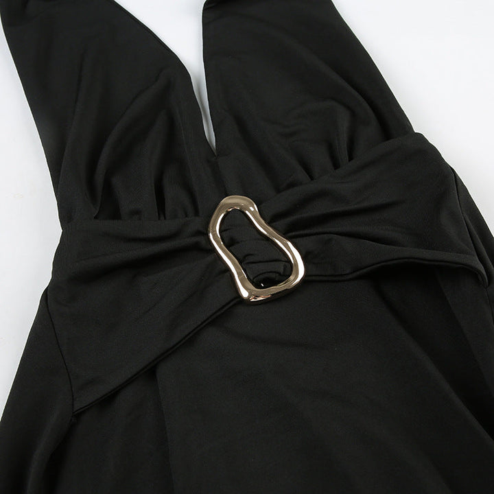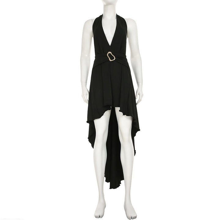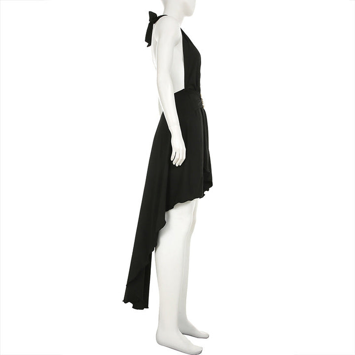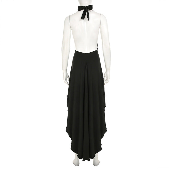 Backless self tie irregular solid maxi dress