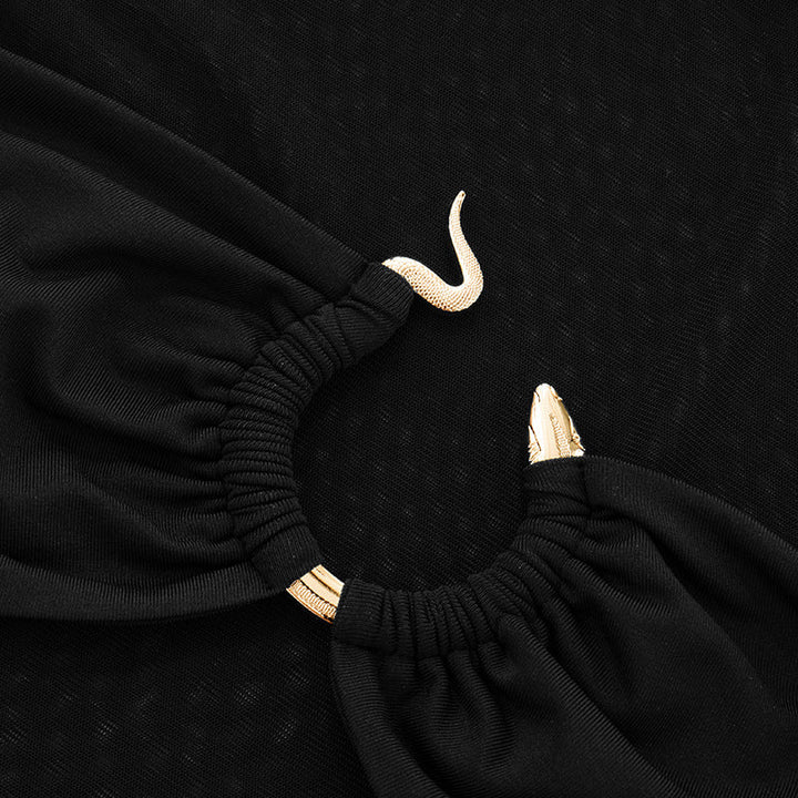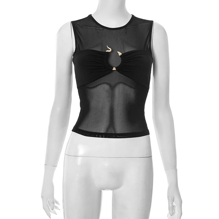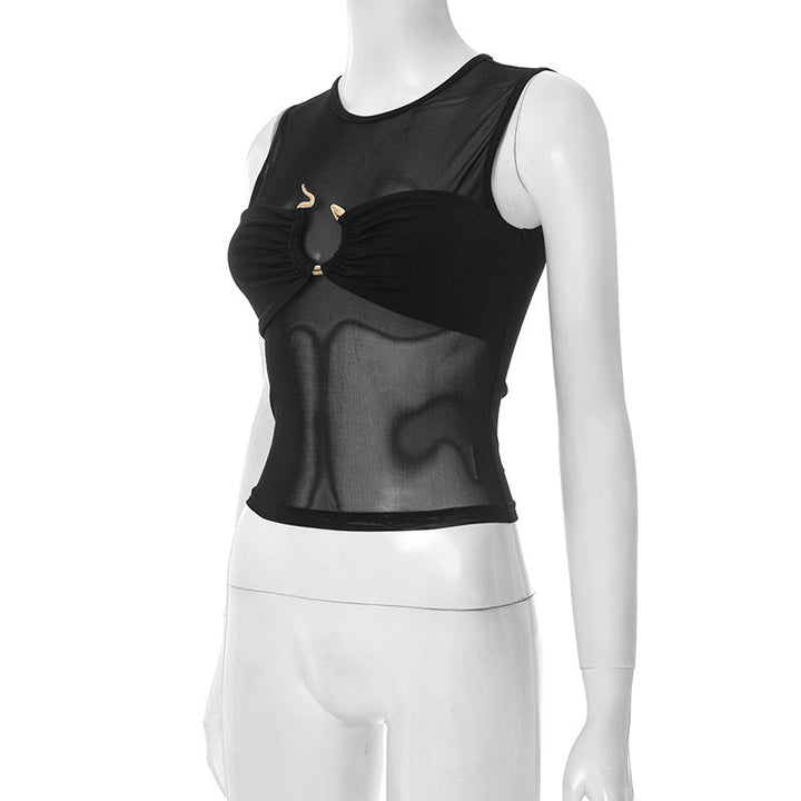Crewneck mesh ruched black crop top