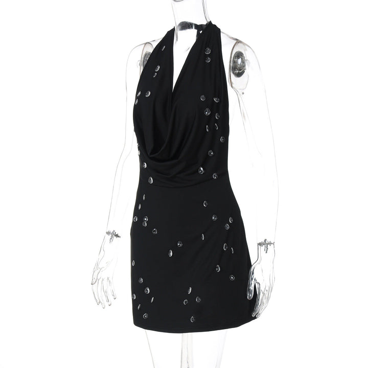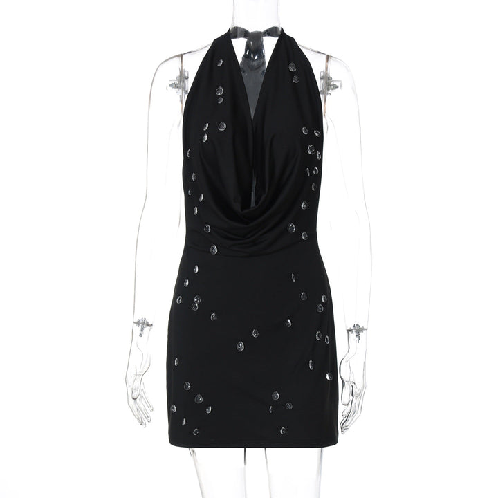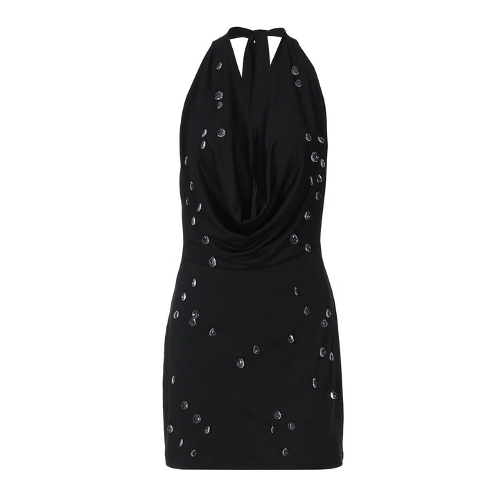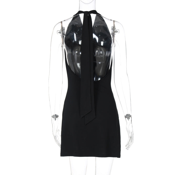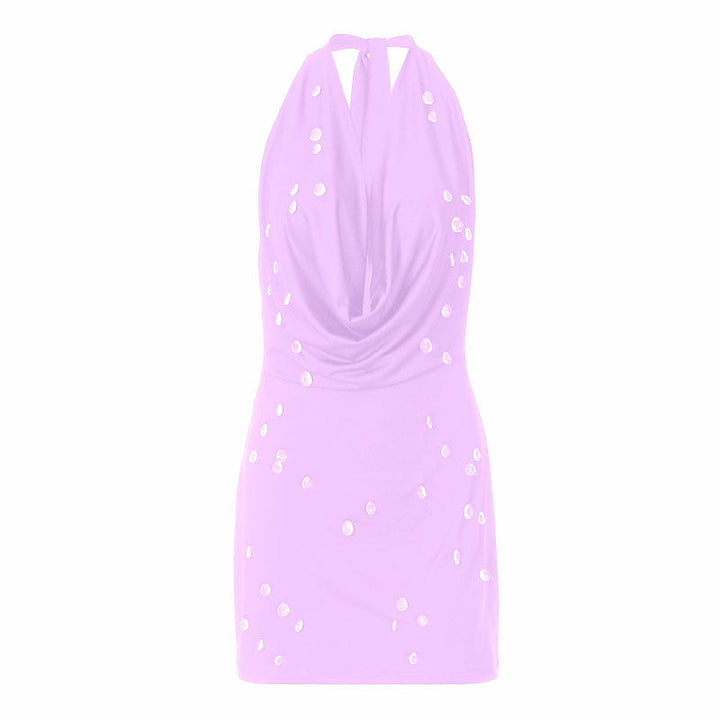 Halter self tie cowl neck backless mini dress