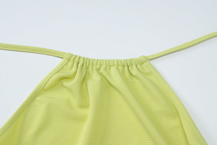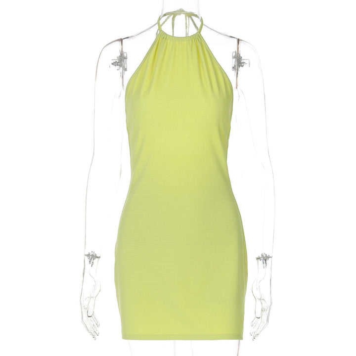 Halter self tie ruched backless mini dress