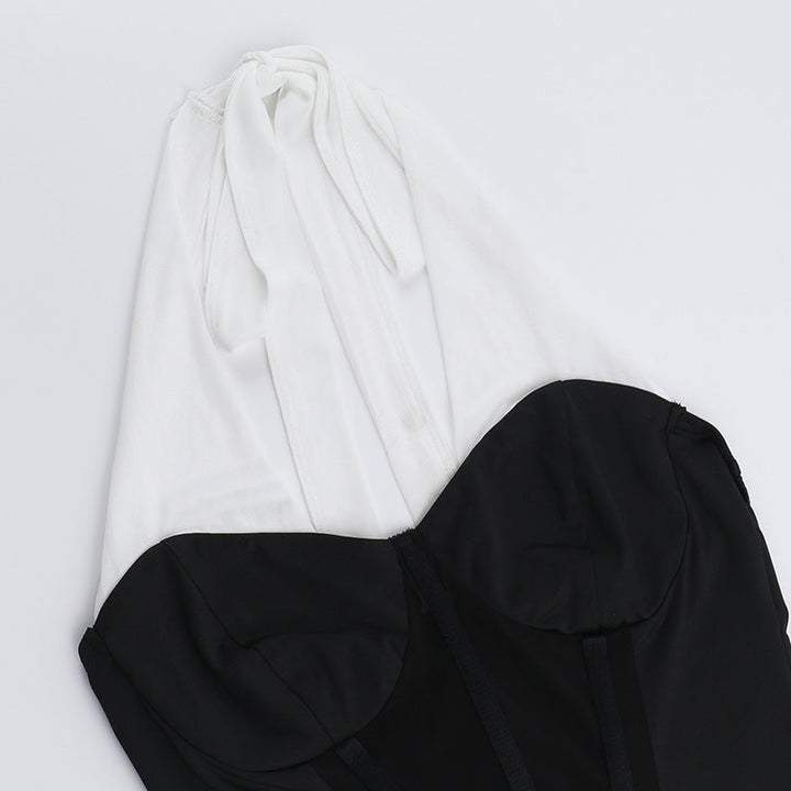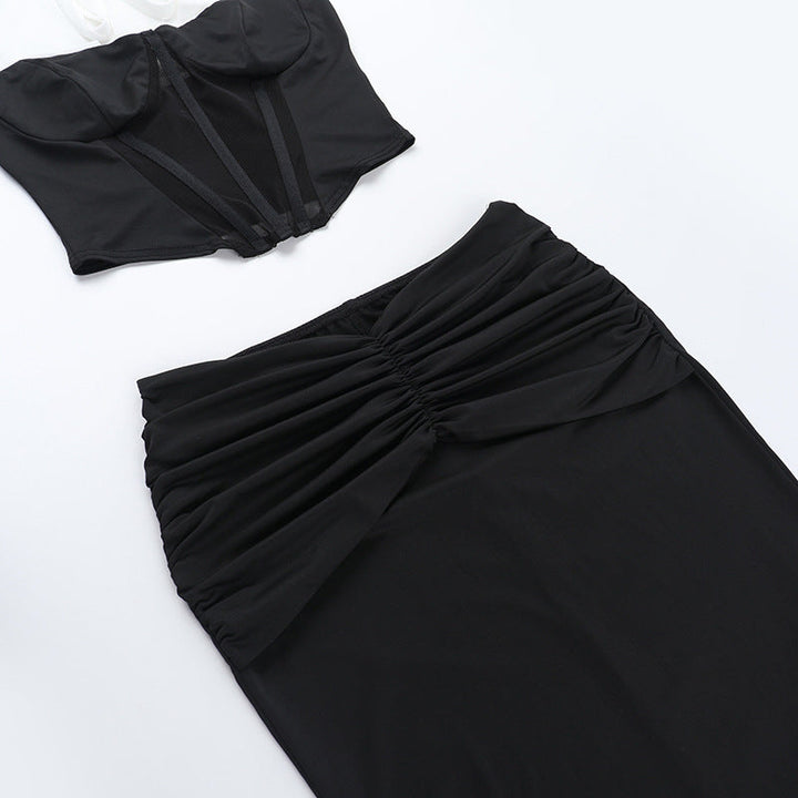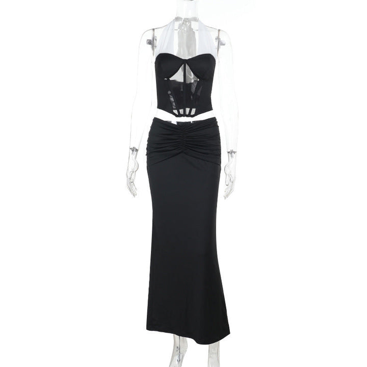 Halter self tie ruched corset maxi skirt set