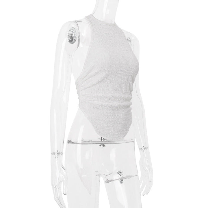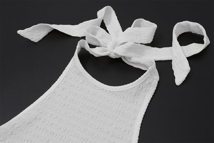 Halter solid backless self tie top