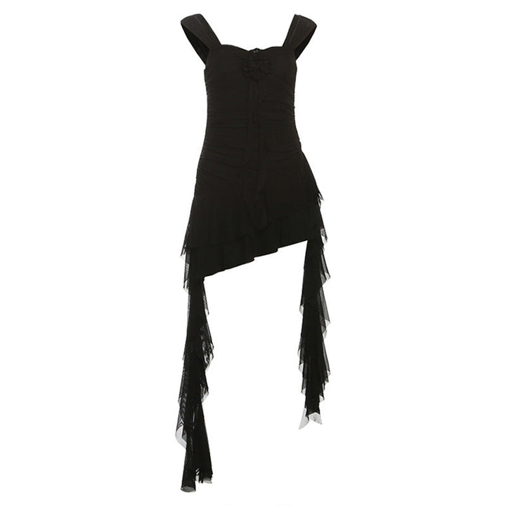 Irregular flower applique ruffle ruched mini dress