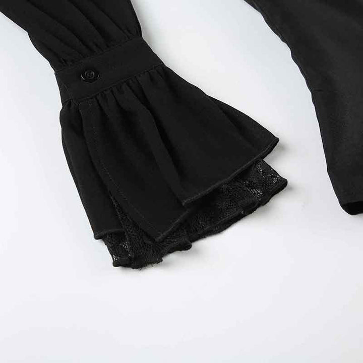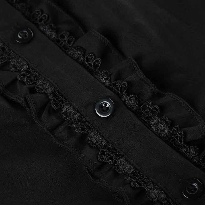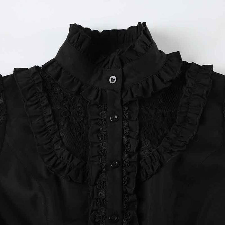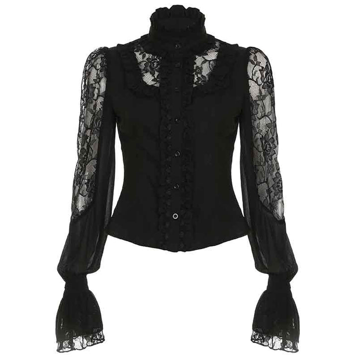Lace long sleeve high neck ruffle button top