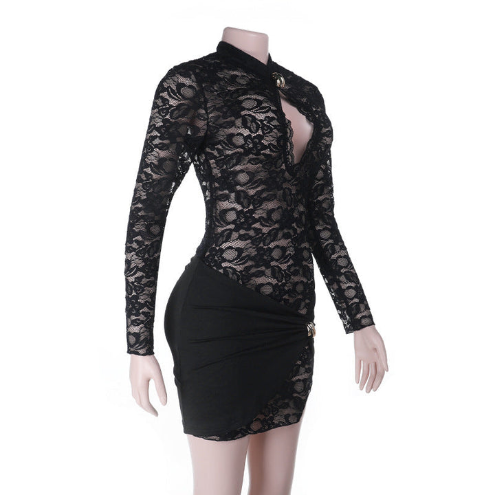 Long sleeve hollow out lace mini dress